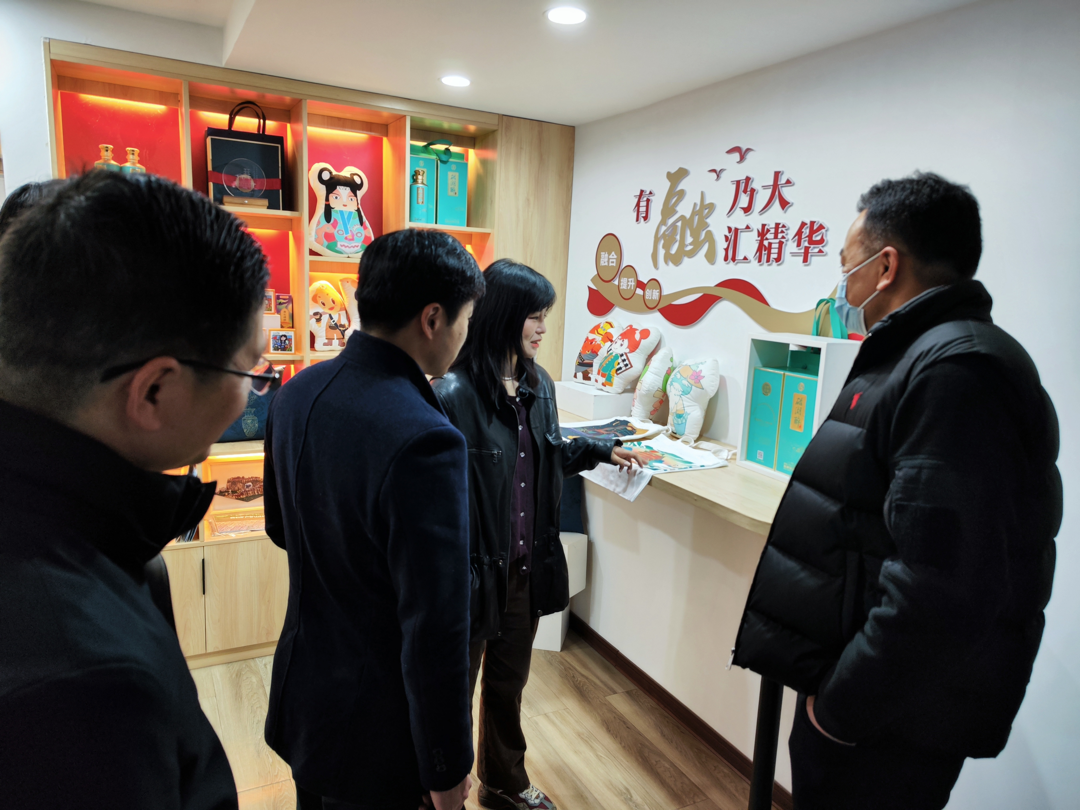 在5楼融媒体中心,杨锋一行认真听取了融媒体中心发展情况介绍,并参观了中心文化墙和文创成果展示。
