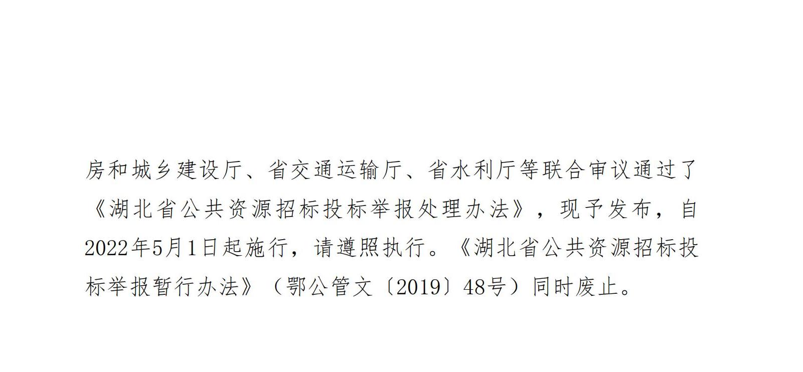 来源:湖北省公共资源交易监督管理局 时间:2022-04-13