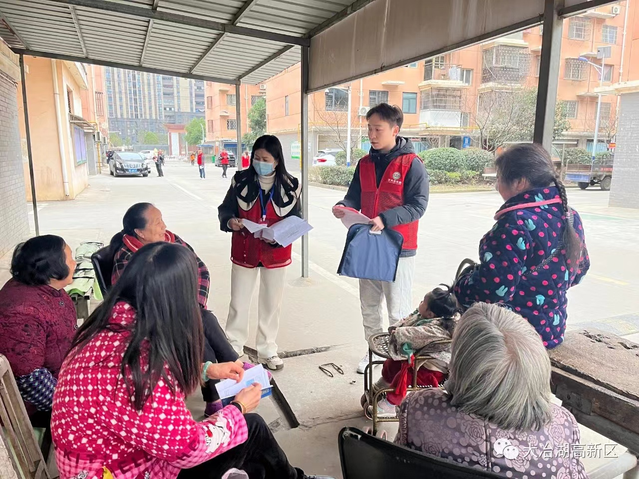针对港湖村还建楼老年人居多的实际情况,政务服务帮帮团志愿者联合港湖还建楼物业,挨家挨户上门,为小区居民提供职工养老资格年审、老年爱心卡年审等贴合老年人实际需求的服务。