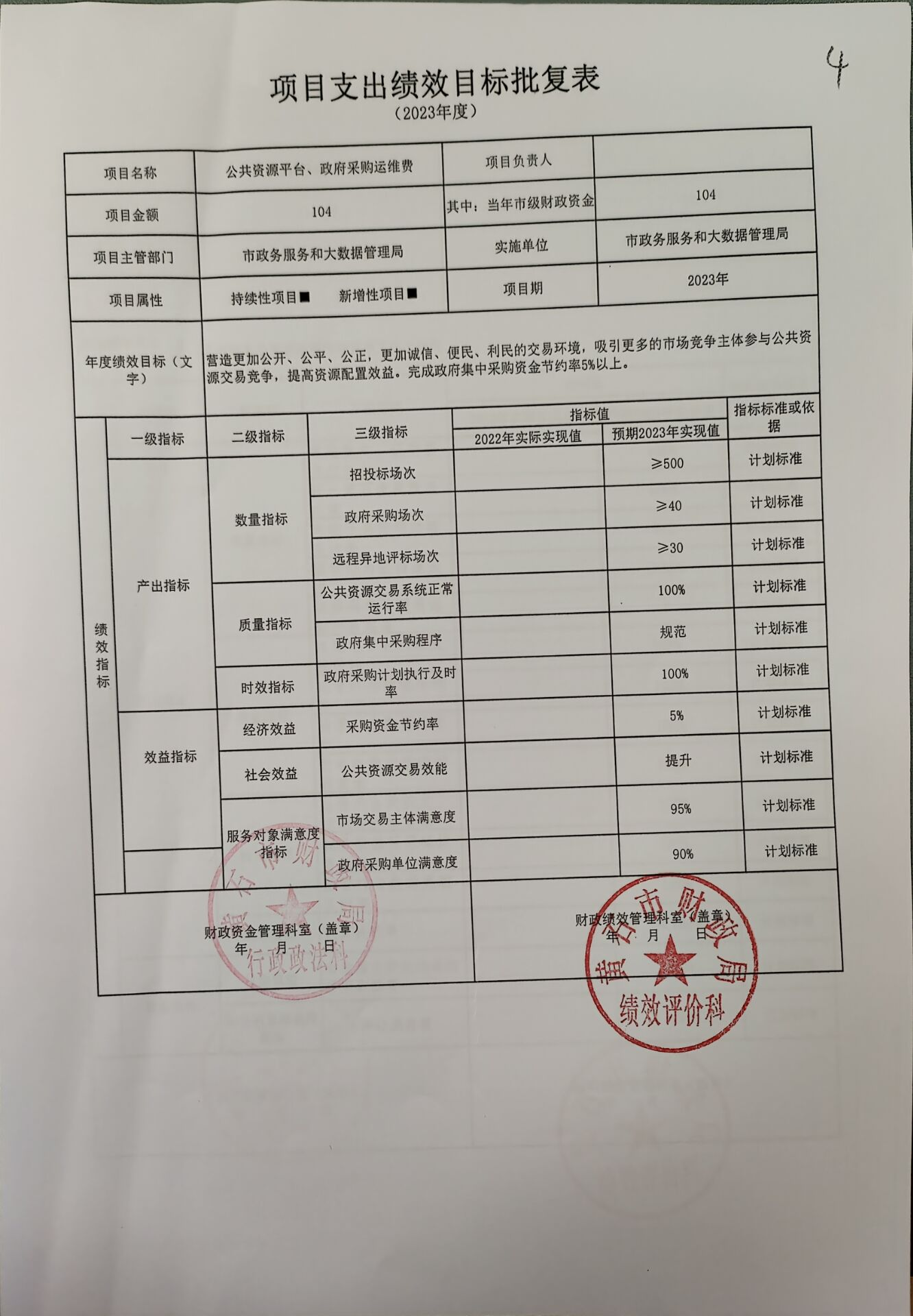 2.公共资源平台、政府采购运维费104.00万元;