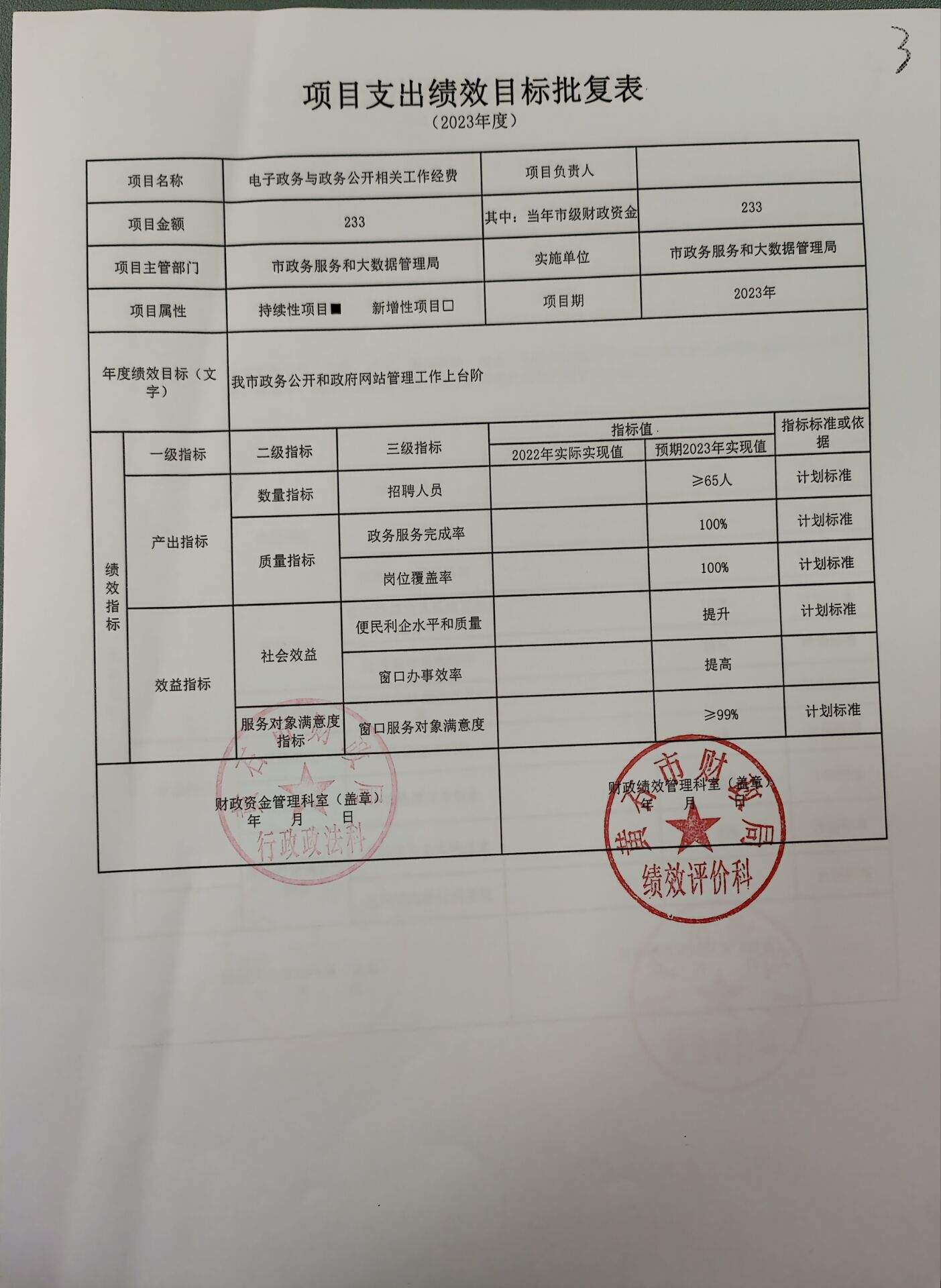 4.电子政务与政务公开相关工作经费233万元;