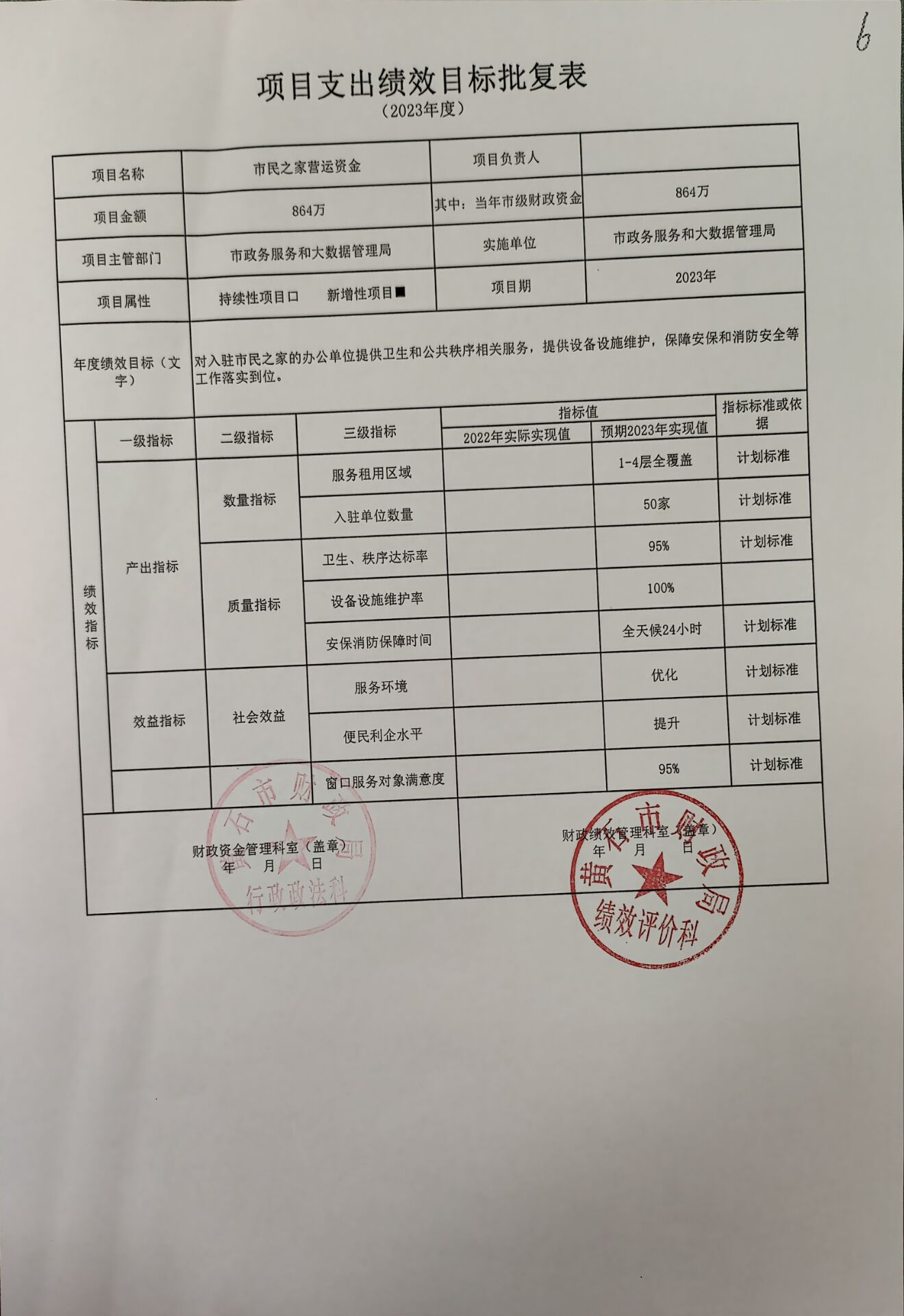 1.市民之家营运资金864万元;