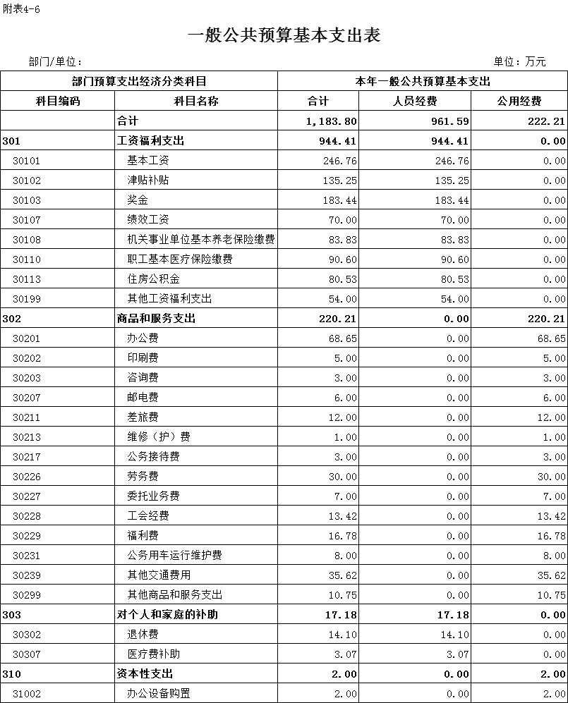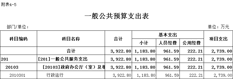 5、基本支出:指为保障机构正常运转、完成日常工作任务而发生的各项支出。